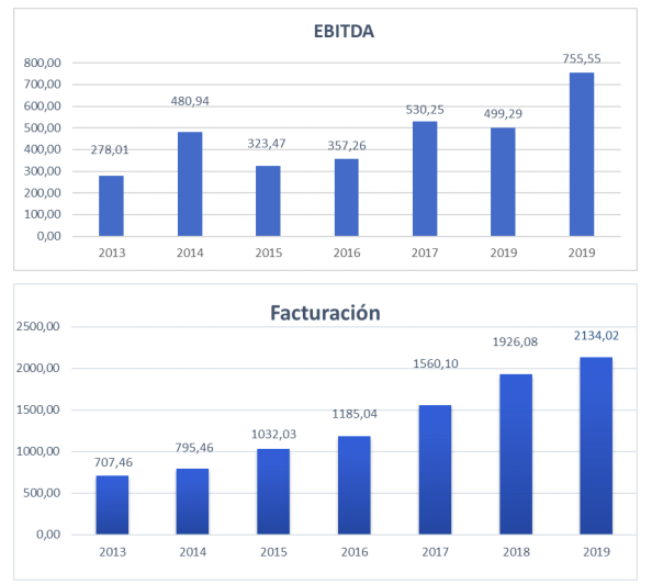 Según la información financiera publicada por estas empresas, que este año ha contado con un plazo de remisión extendido hasta el 30 de junio debido a la crisis del Covid-19, estas compañías han demostrado una elevada capacidad para generar caja, al registrar un EBITDA agregado en 2019 de 755 millones de euros, lo que supone un aumento del 51% con respecto al año anterior. Estos datos soportan la tendencia alcista entre 2013 y 2019, ya que el crecimiento compuesto anual en este apartado ha sido del 18%.