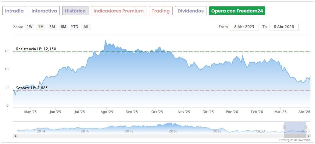 Los títulos acumulan una caída del 15,7% en lo que va de año, mientras que pierden más de un 34% ya desde los máximos de 13,70 euros de julio del año pasado.