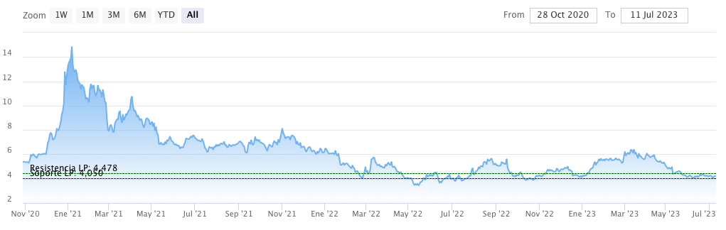 Con potencial por encima del 57% encontramos a Soltec, compañía cotizada española cuyo precio objetivo, según los analistas de Reuters, es de 6,6 euros por acción. Asimismo, cinco de las seis casas de análisis que siguen al valor, recomiendan su compra, frente a una que se muestra más cauta en “mantener”.