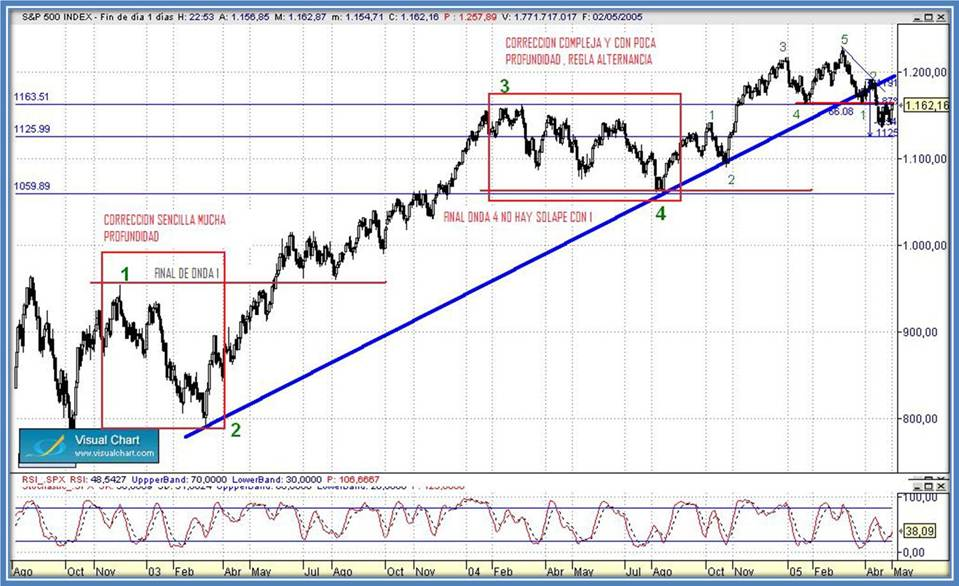 Pero además y lo mas importante, es que si se pierde ese nivel a la baja con mas de dos cierres diarios se habrá producido un solape entre la ONDA 1 y la ONDA 4 y por lo tanto se habrá incumplido una de las pautas o reglas básicas de la Teoría de Elliot.
