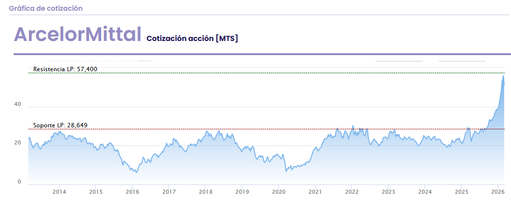 En este escenario de nerviosismo, ArcelorMittal se convierte en el valor más castigado de la bolsa hoy, con caídas cercanas al 8% y cotizando en el entorno de los 44 euros por acción.