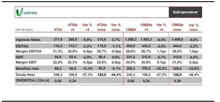 En cuanto al cumplimiento de los objetivos anuales, Renta 4 prevé que Vidrala se quede muy cerca a la consecución de los mismos, estimando un EBITDA de 443 millones de euros y un FCF de 193 millones, “unas cifras que consideramos muy positivas, considerando como ha evolucionado el ejercicio en cuanto a la demanda y las diferencias de los tipos de cambio”.