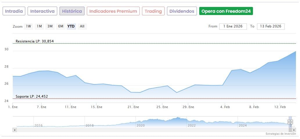 Tras un 2025 complicado, las acciones de Cellnex han iniciado el año con ánimos renovados en el IBEX 35: no solo suben un 9,33% en lo que va de 2026, sino que rebotan ya un 21% desde que el 22 de enero tocasen mínimos de las últimas 52 semanas en 24,77 euros.