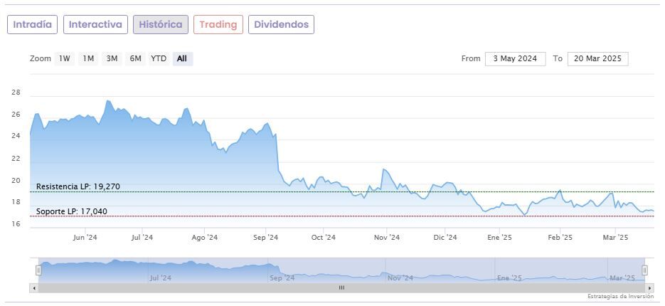 Hasta ahora, el punto más bajo se situaba en los 17,04 euros que llegó a tocar el 14 de enero.
