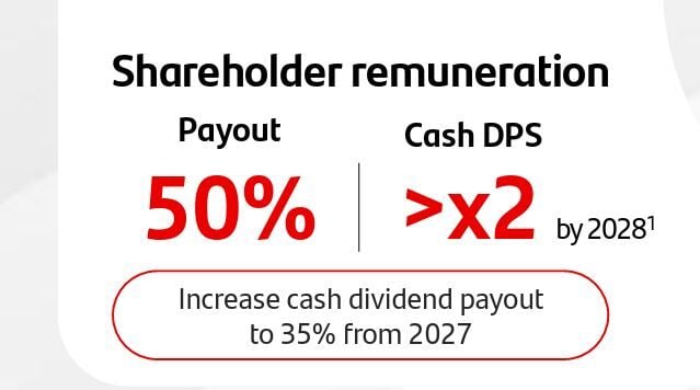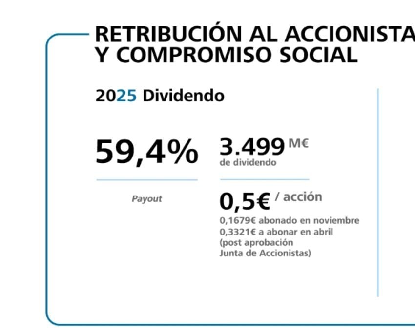 El resto se distribuirá en abril, una vez que la junta lo apruebe. Hablamos de 0,60 euros por acción para lo que se gastará 5.249 millones de euros para retribuir a sus accionistas con cargo a 2025. Ahora mismo su rentabilidad por dividendo alcanza el 4,65%.