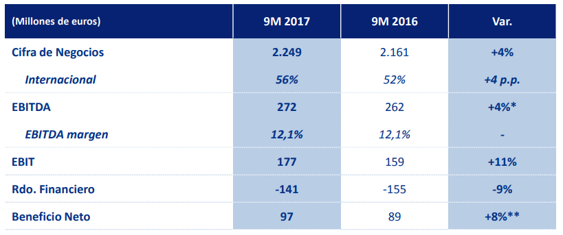 En servicios, la cifra de negocios de Valoriza creció el 8% entre enero y septiembre, hasta sumar 704 millones de euros, gracias a la positiva evolución de sus áreas de actividad. El ebitda alcanzó los 59 millones de euros, el 13% más que en 2016, con una mejora de la rentabilidad de los negocios. La cartera de Valoriza asciende a 6.029 millones de euros.