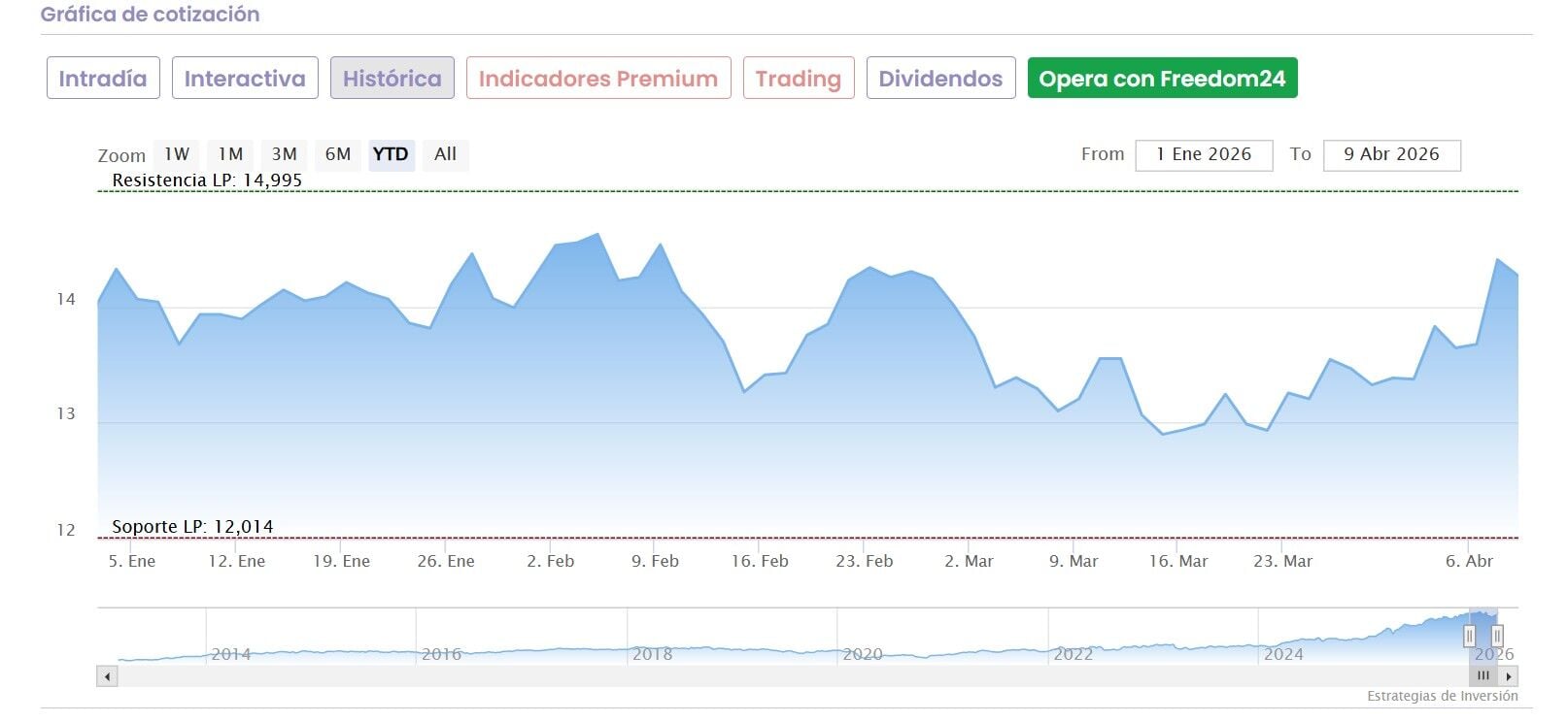 Ya para Bankinter, mantener es la media que otorgan los analistas que recoge Reuters, con precio objetivo de 15,09 euros por acción y potencial del 5,5%.
