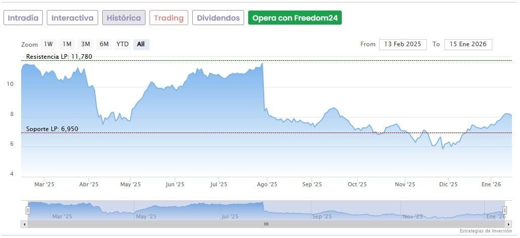 La buena noticia es que las acciones de la compañía han rebotado un 52,13% desde que en noviembre marcó un mínimo histórico de 5,62 euros.