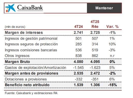 Caixabank presentará sus resultados del cuarto trimestre y el conjunto del ejercicio 2025 este viernes 30 de enero. Analizamos de la mano de Nuria Álvarez, analista de Renta 4, qué cifras podría poner la entidad sobre la mesa.