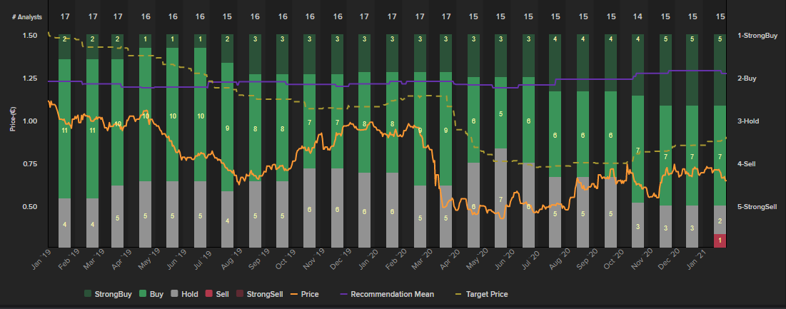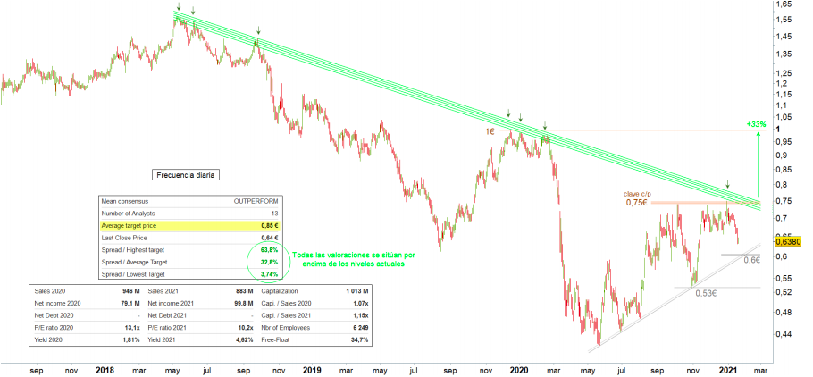 Este miércoles la cotización vive una nueva sesión a la baja, con caídas del 1,4% que llevan a sus títulos los 0,63 euros. Sin embargo, la confianza en el valor no se pierde.