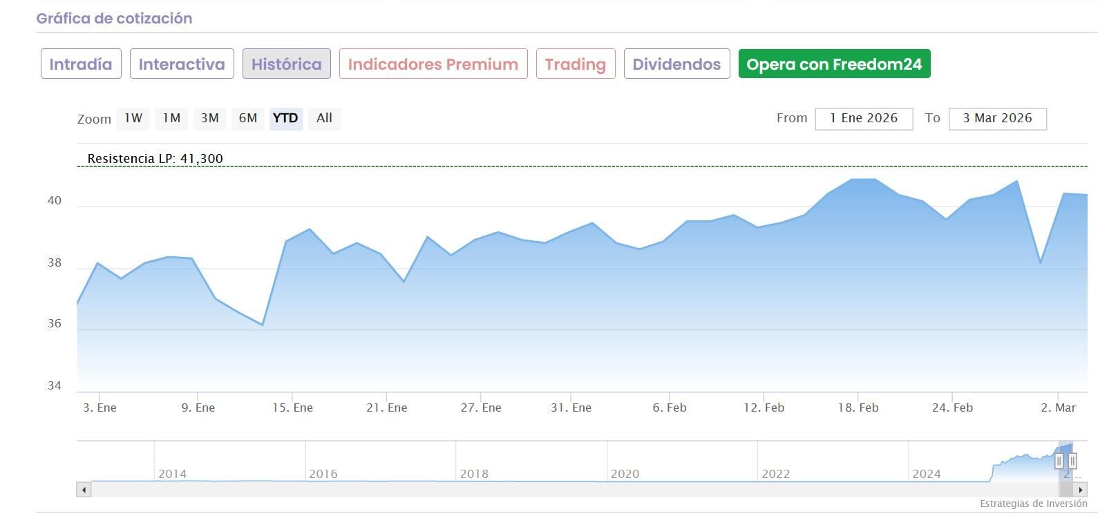 El valor se mantiene en positivo con ganancias del 6% en el año, un nivel muy similar al de los últimos 3 meses.