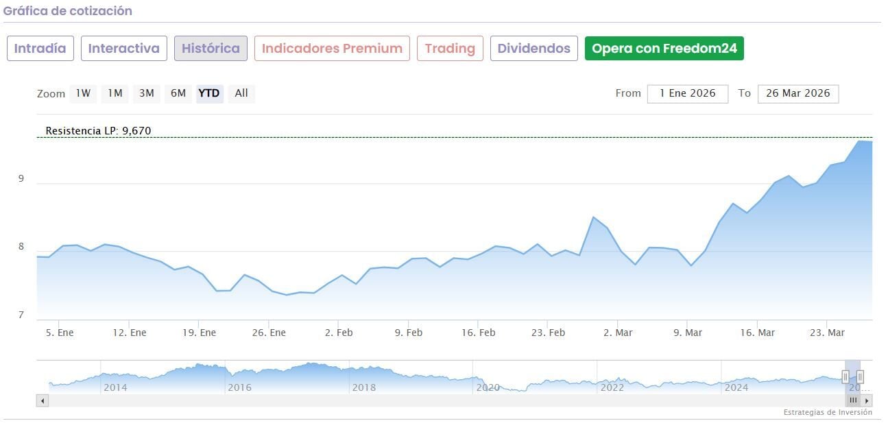 La renta variable española está sufriendo como el resto de mercados en este mes que se cumple desde que Estados Unidos a Israel atacaran a Irán. Pero lo cierto es que hay valores a los que incluso les ha ido bastante bien ante esta dinámica. No solo han mostrado su resiliencia, sino que, además, has ganado tracción con subidas de doble dígito, acercándose incluso la revalorización, al 20%.