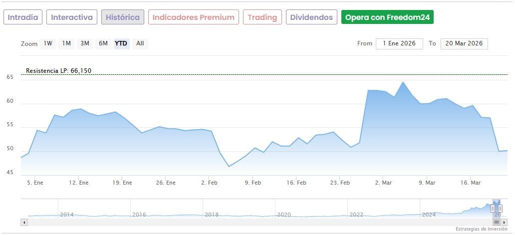 Las acciones de Indra caen un 4,09% a media mañana hasta marcar 48,10 euros en el IBEX 35. Con este nuevo castigo, los títulos caen ya un 27,2% desde los máximos históricos de 66,15 euros que tocó hace apenas 3 semanas, el pasado 2 de marzo. No obstante, todavía suben un 131% desde sus mínimos de las últimas 52 semanas, fijados en 20,82 euros desde el 7 de abril del año pasado.