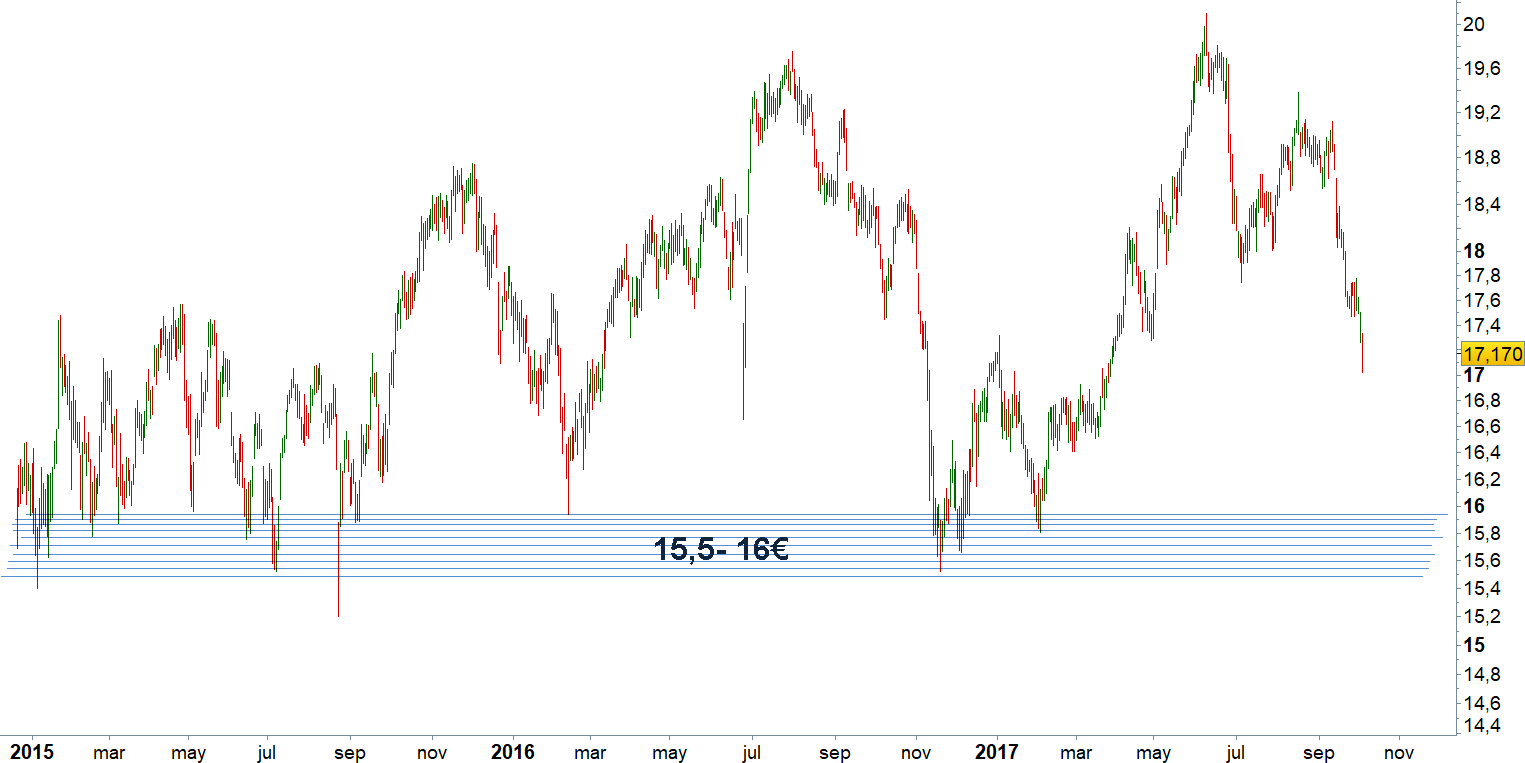 Red Electrica: soporte importante entre 15,5 y 16 euros.
