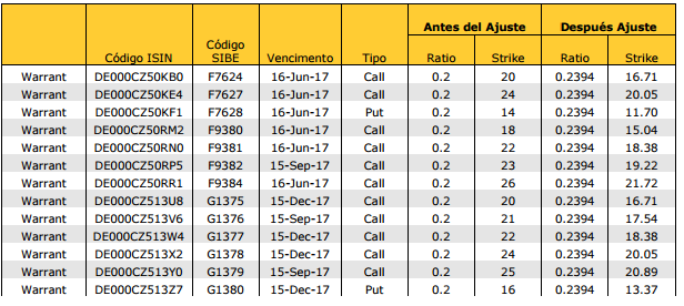 Con motivo del reparto de dividendo extraordinario por parte de Gamesa Corporación Tecnológica S.A, se realizarán los ajustes correspondientes. El emisor aplicará el correspondiente “Factor de Ajuste” sobre las características de las emisiones anteriores para que este evento extraordinario tenga un efecto económicamente neutral.