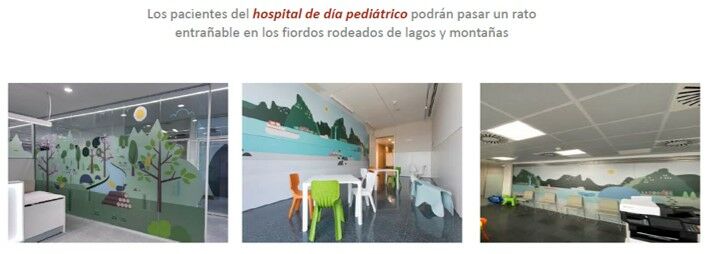 Por su parte, en el Hospital de Día Pediátrico, los pacientes más pequeños podrán pasar el tiempo necesario para recibir el tratamiento que les corresponda con la experiencia visual de encontrares en un lugar entrañable de los fiordos, rodeados de lagos y montañas.