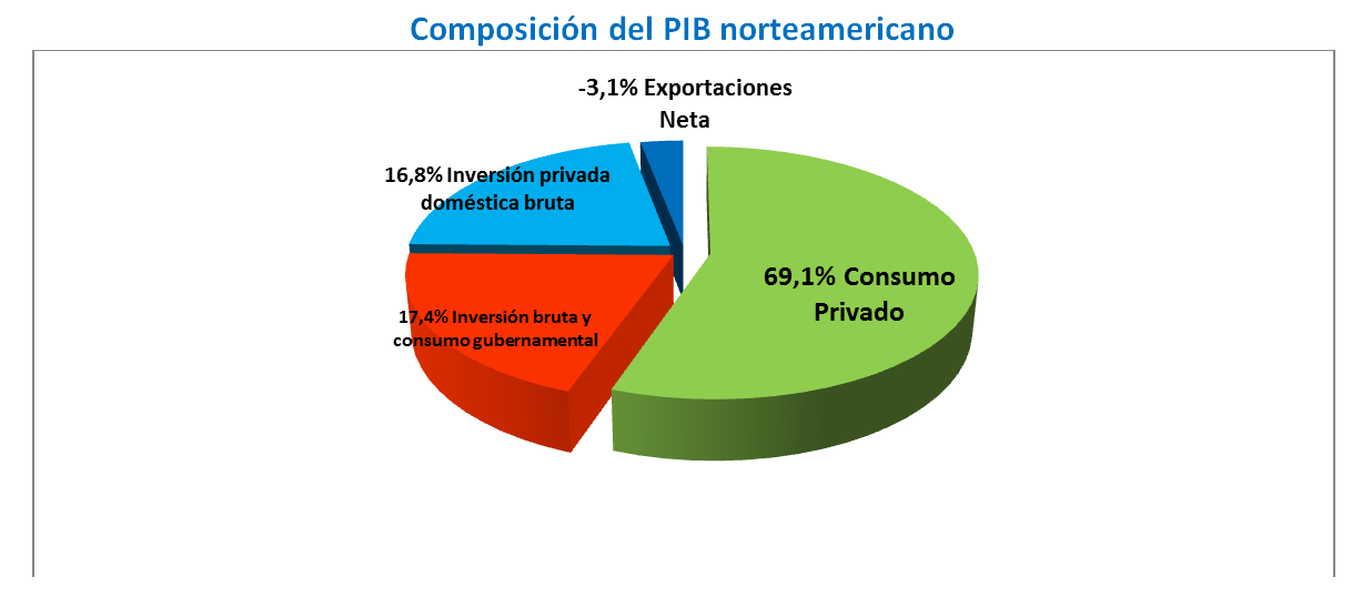El nexo causal que establecemos entre el mercado laboral y la renta variable estadounidense está fundamentado en la propia composición del PIB norteamericano, ya que en la actualidad el 69% del PIB de EE.UU. es consumo privado y no hay nada que erosione más la capacidad adquisitiva de un agente económico que la pérdida de su empleo, lo que repercute de manera directa sobre los resultados de las compañías al cesar el consumo de sus productos.