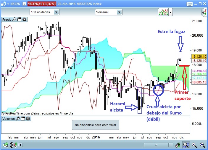 Seguimos viendo, como lo hacíamos hace una semana, la zona de soporte donde ha rebotado el valor, siendo ahora la línea Tenkan-Sen el primer soporte.