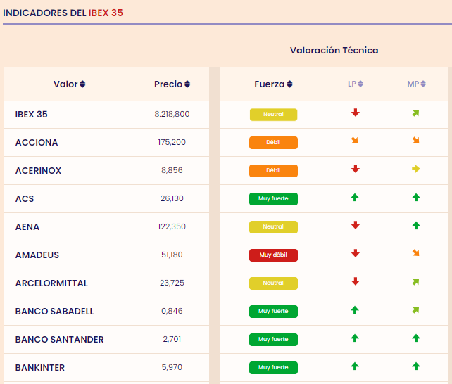 Ya están disponibles para todos los suscriptores de Ei premium los nuevos indicadores de fuerza tendencialque permiten filtrar con un solo clic todo el mercado español, los principales índices europeos y también los americanos. Una herramienta fantástica para elegir valores con tendencia alcista que nos permiten establecer una operativa concreta y repetirla sistemáticamente.