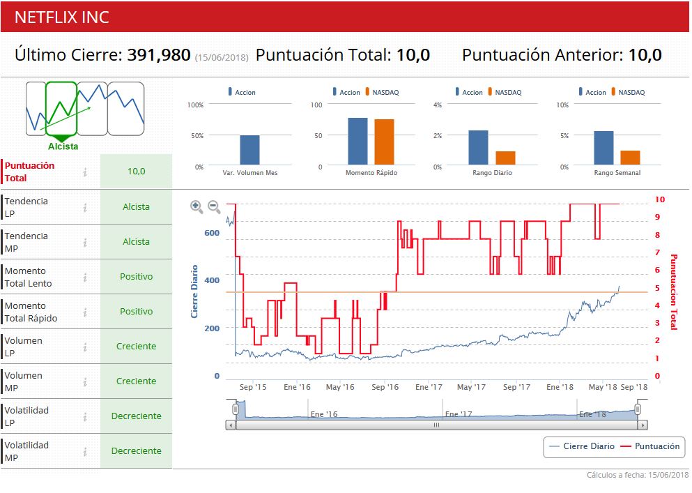 Su aspecto técnico alcista también es innegable. Puntuación de diez en un valor que se encuentra en tendencia alcista a medio y largo plazo, momento positivo y volatilidad y volumen como factores positivos para seguir viendo subidas en el valor. Antonio Espín, analista independiente reconoce que es un valor en subida libre, es un valor fuerte y alcista con una fase correctiva que deja atrás. “La pregunta es cuánto durará este movimiento. El movimiento está siendo explosivo con lo que hay que ser disciplinado con el stop, que lo pondría en 1.640 dólares, mientras tanto dejarlo correr”. (Ver: Análisis técnico de Amazon)