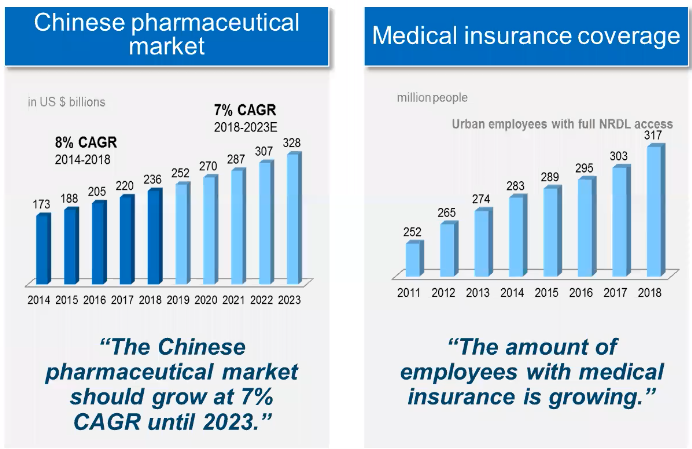 Otro impulsor es el incremento del seguro de salud en China, que hace que mayor número de personas tengan acceso a medicamentos con lo que el mercado farmacéutico en ese país muestre tasas de crecimiento importante.