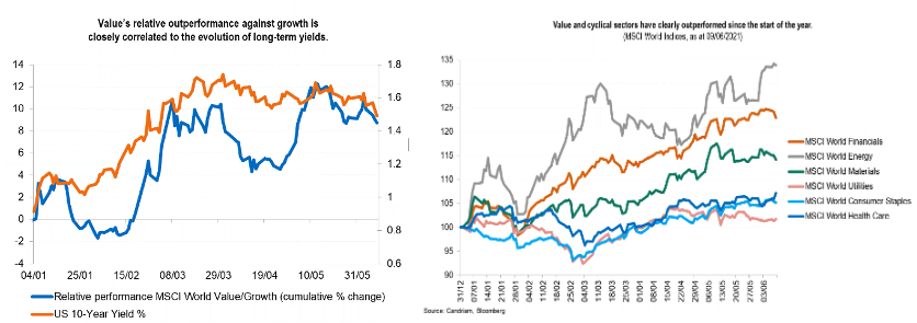 Considerando un entorno en el que las acciones valor, desde gran parte del 2020 y lo que va del 2021, han tenido un mejor desempeño que las acciones de crecimiento, debido a la mejora de la campaña de vacunación que ha permitido recuperar en cierta forma la actividad “normal”, así como por el empuje por parte del estímulo presupuestario, en especial en EE.UU.