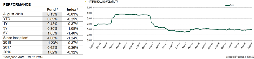 UBAM – Absolute Return Low Vol Fixed Income Fund (ARLV): en un entorno de tipos negativos, en el que, con suerte los bancos no traspasan al cliente final los costes de tener liquidez en cuenta, este fondo es una buena alternativa para aquellos que pretendan maximizar la rentabilidad de su tesorería con un muy bajo riesgo. ARLV se muestra, según la base de datos de Morningstar, como un fondo de tamaño medio, con un binomio rentabilidad/riesgo adecuado en su categoría, con un retorno anualizado (bruto) desde su lanzamiento, en junio de 2013, de un 1,24%, y lo que es más más importante, con una volatilidad anualizada del 0,5%.