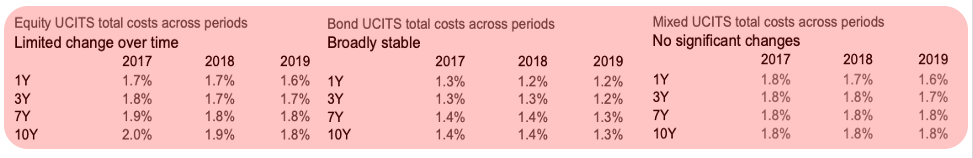 De este modo, para el periodo 2009-2018, la rentabilidad bruta superior en las UCITS activas en comparación con aquellas pasivas y ETF no fueron lo suficientemente altas para compensar estos mayores costes.