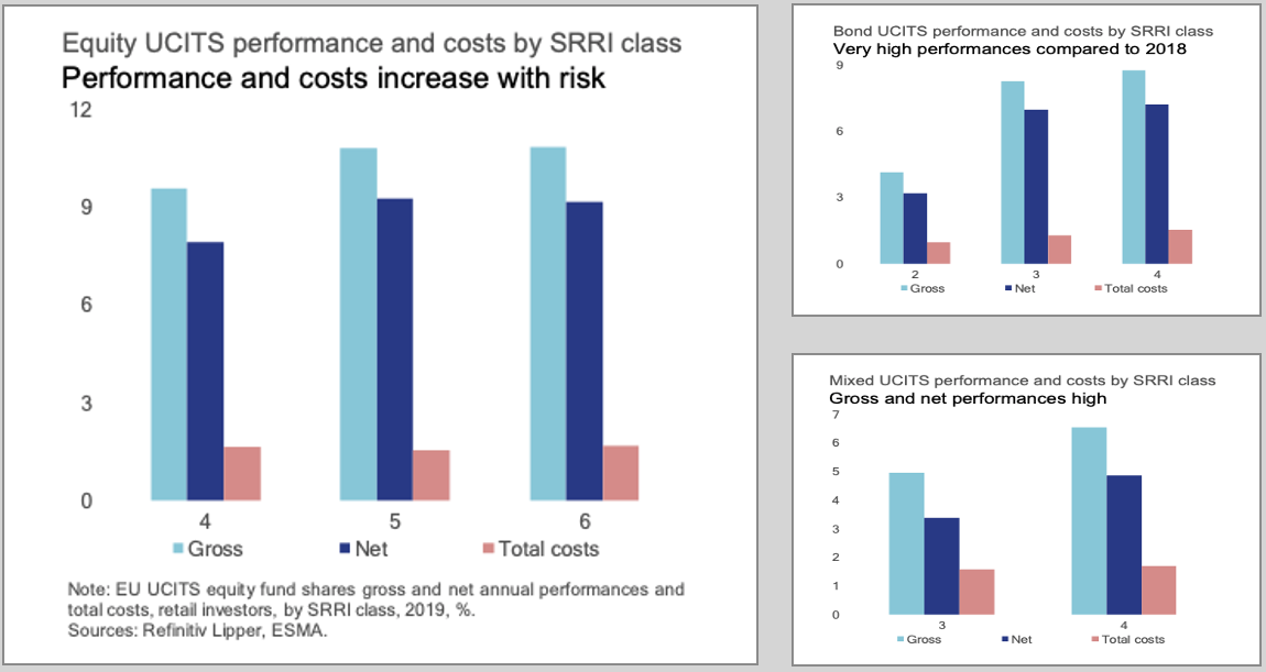 En el estudio de ESMA para 2019 y 2020 se deja claro el algo impacto que tienen los costes en la rentabilidad final de los inversores minoristas, ya que son significativamente más altas los costes pagados por estos inversores que aquellos aplicados a otras clases, como banca privada o cliente institucional.