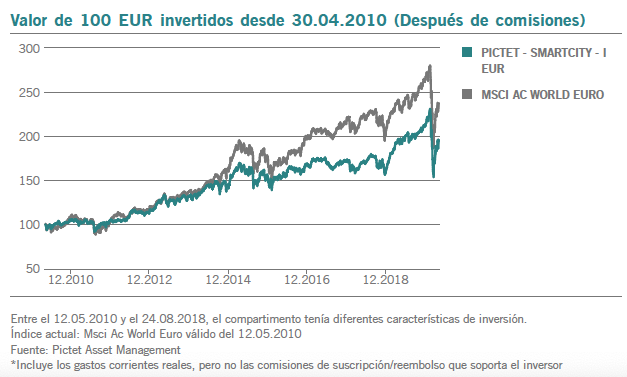 Pues la alternativa es el fondo Pictet – SmartCity, la última incorporación de Pictet AM a su gama de fondos temáticos. Fue lanzado el 24 de agosto de 2018, tras la reconversión del fondo Pictet-High Dividend Selection que existía desde 2010.