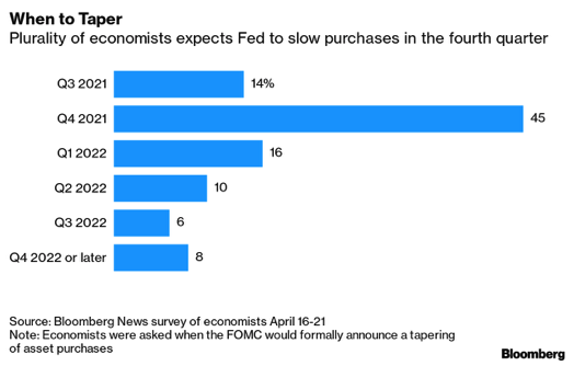 Algunos economistas esperan que el tapering sea en el 4T21, aunque hay algunos presidentes de las reservas federales de EE.UU., como Robert Kaplan de Dallas que consideran que la economía aún necesita las ayudas, y así lo muestra el índice de sorpresas económicas de Citigroup, que ha estado cayendo recientemente.