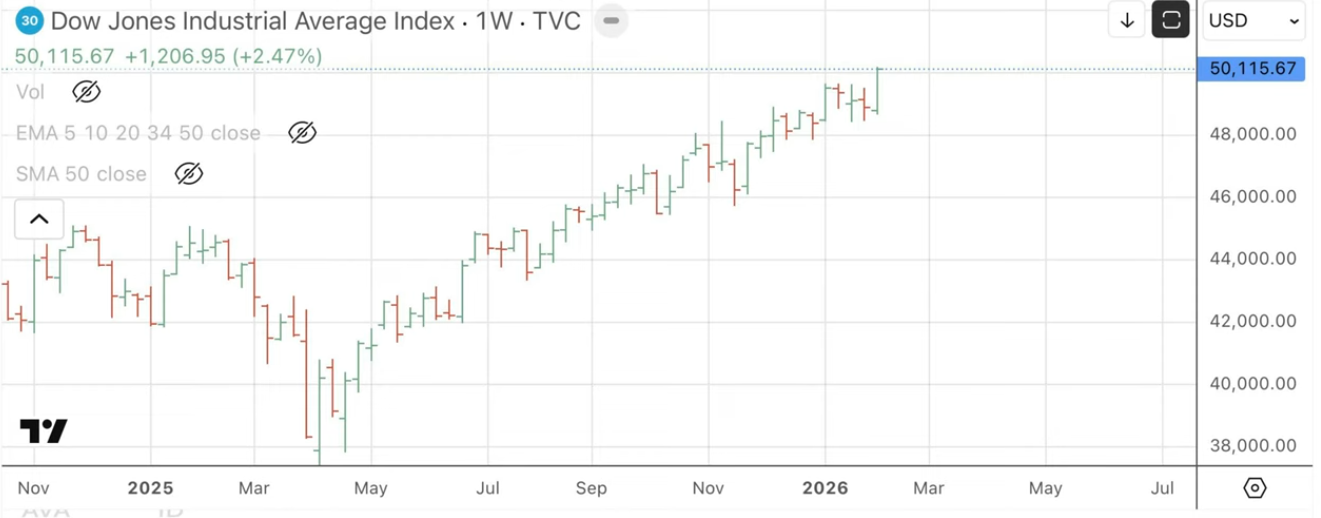 Esa liquidez sería necesaria para la colocación de SpaceX, lo que exige “provocar bolsas alcistas, por lo menos hasta mayo”. Los mercados, a su juicio, ya lo reflejan: el Dow Jones ha superado los 50.000, el S&P 500 equiponderado marca máximos y el Russell 2000 subió un 3,6%, en línea con una rotación hacia empresas pequeñas y medianas. “De burbuja nada. Ha habido una rotación del sector de la tecnología a valores de pequeña y mediana capitalización”.