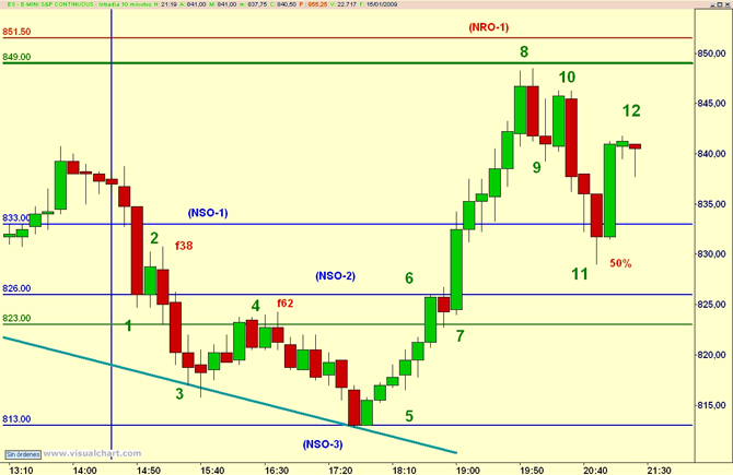 5 Nuevo segmento bajista para hacer los mínimos de la sesión coincidiendo con el (NSO-3).