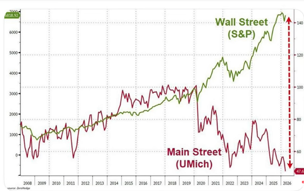 Lo más interesante desde el punto de vista de mercado es que, pese a toda esta tensión, los activos no reflejan el nivel de miedo que sí percibo en el discurso público. El S&P 500 se mantiene cerca de máximos, mientras que indicadores como el sentimiento del consumidor siguen deprimidos.