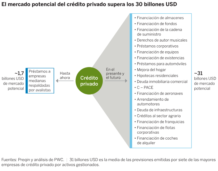 De cara al año que viene, "esperamos que la clase de activo adquiera mayor relevancia como instrumento de financiación establecido y continúe avanzando desde sus orígenes en los préstamos directos a medianas empresas («middle market») hacia un conjunto de recursos más diversificado en múltiples sectores. Esta transformación en curso se está viendo favorecida por los cambios estructurales en las prácticas bancarias, la elevada demanda de financiación a medida y una búsqueda cada vez mayor de rendimientos y diversificación entre los inversores institucionales y de patrimonio privado".