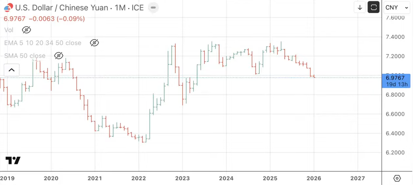A nivel internacional, sostiene que la caída del régimen de Venezuela, la posible caída del régimen de Irán y las negociaciones con Cuba “reducen las tensiones geopolíticas”. Añade que estas decisiones se han tomado tras una negociación previa con China, lo que se refleja en la depreciación del dólar frente al yuan, señal de un acuerdo entre autoridades económicas chinas y estadounidenses “dentro de un marco más amplio”.