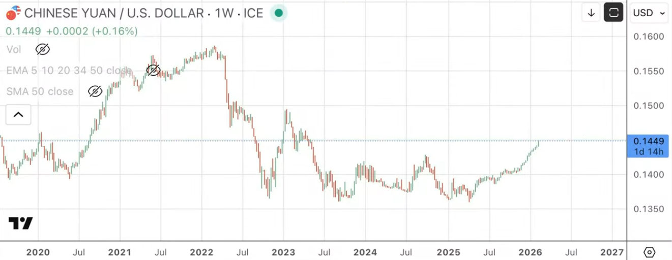 El experto señala que el yuan “está subiendo con fuerza con respecto al dólar” porque “han llegado a un acuerdo”, mostrando “una tendencia alcista clara”. Considera que el euro debería depreciarse “al menos un 9%”. El franco suizo podría dirigirse a “la zona del 1,15”, en un contexto de posible devaluación del euro.