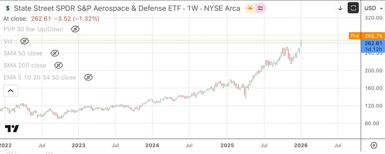 La tercera pregunta aborda la relación entre liquidez y gasto militar. Tras un mensaje de Trump exigiendo a las empresas de defensa recortes de salarios, dividendos y recompras, Cava afirma que el sector no tiene problemas de financiación. Cita la tendencia alcista del ETF XAR, las condiciones financieras laxas y las primas de riesgo en mínimos históricos reflejadas en el ETF HYG. Desde su punto de vista, el mensaje real es que Trump quiere “favorecer el sector real frente a Wall Street”, desviando liquidez del sistema financiero.