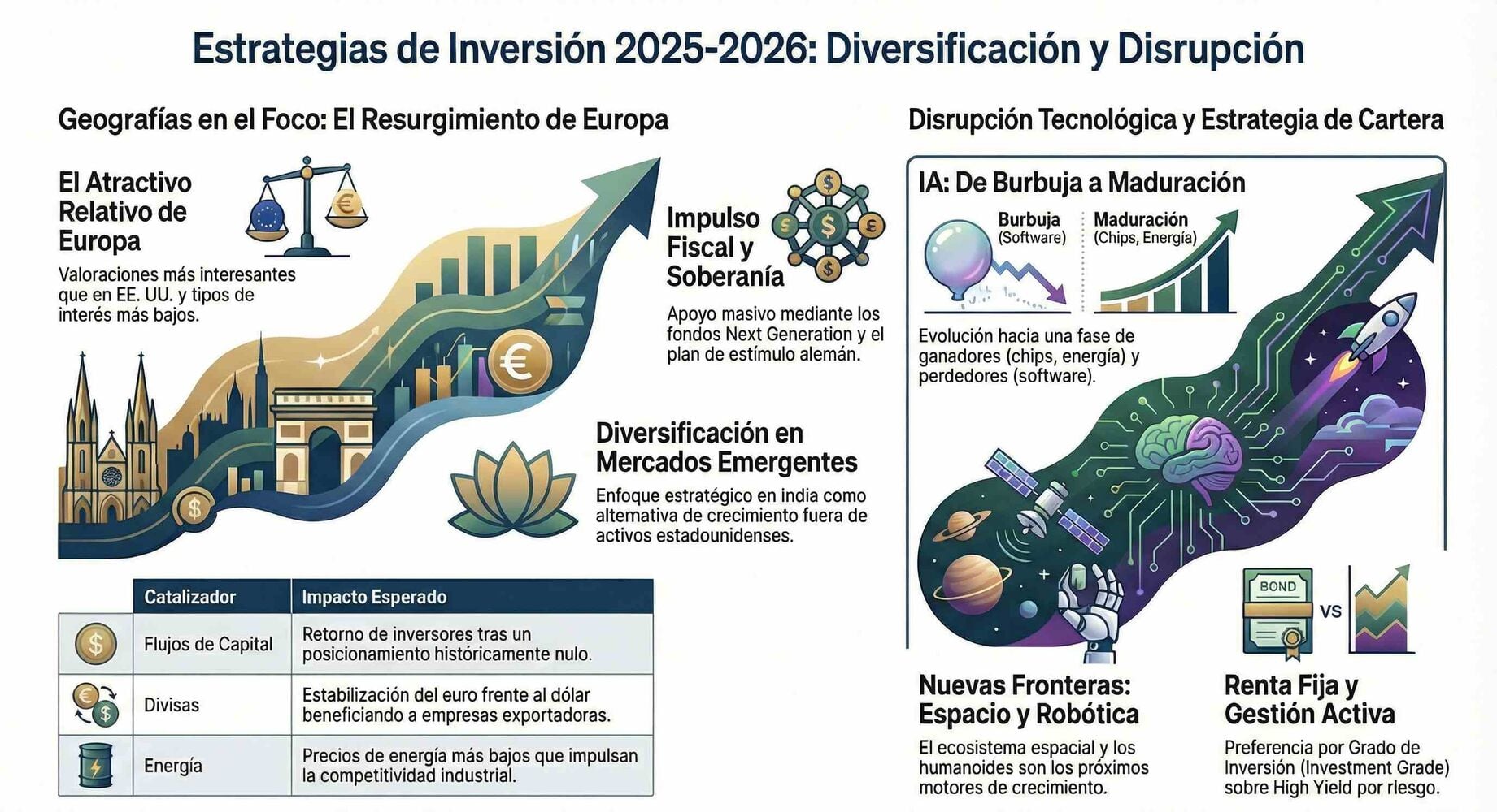 La entrevista deja una sensación clara de que el mercado ya no premia estar, sino cómo se está. Europa vuelve a ser invertible, la IA exige discriminación, la renta fija pide cautela y la gestión activa pasa a convertirse en una necesidad.