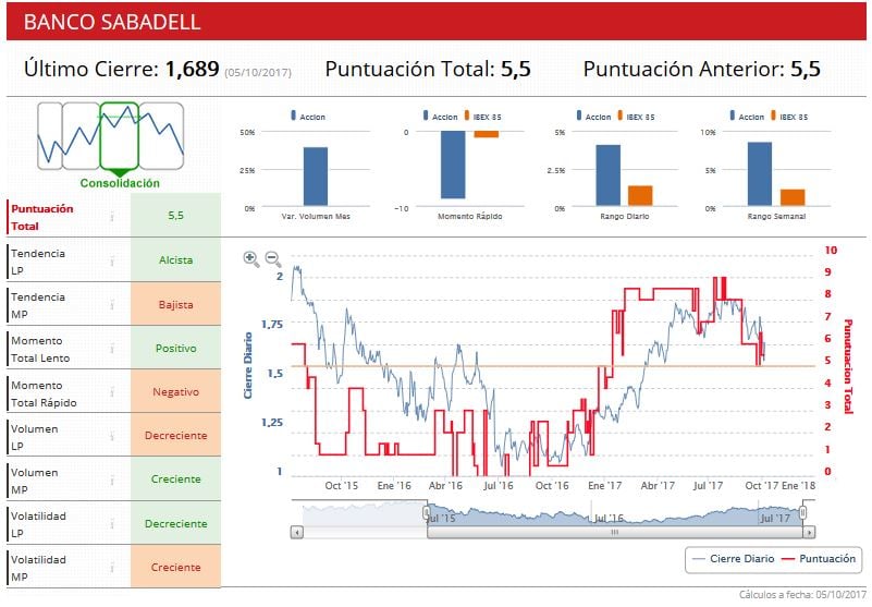 El referéndum celebrado el pasado domingo ha tenido un efecto directo sobre la renta variable nacional. Aparte del recorte de cerca de dos puntos porcentuales que ha experimentado el selectivo, la penalización ha sido especialmente dura en aquellos valores con sede en Cataluña. Caixabank y Sabadell se dejan más de un 4% en la última semana, a pesar de la fuerte subida experimentada en la sesión de ayer tras anunciar el cambio de sede. Y a pesar de todo, ambas compañías se encuentran en situación de aprobado con una tendencia que sigue siendo alcista en el largo plazo