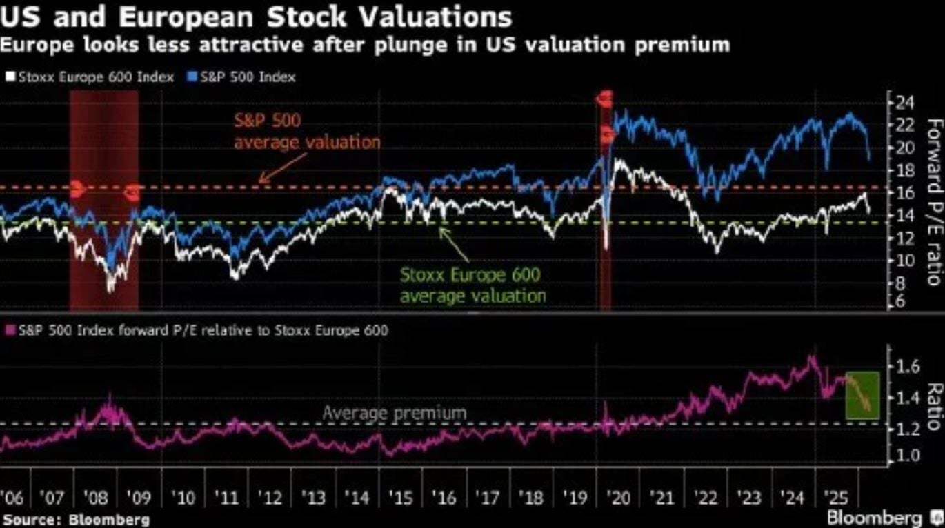 Dicen desde BlackRock que Europa pierden tracción frente a Estados Unidos en la esfera de la renta variable. Algo que es una gran novedad si tenemos en cuenta que el Viejo Continente, con PERs mucho más asequibles y baratos que los de los valores de Wall Street...hasta ahora.