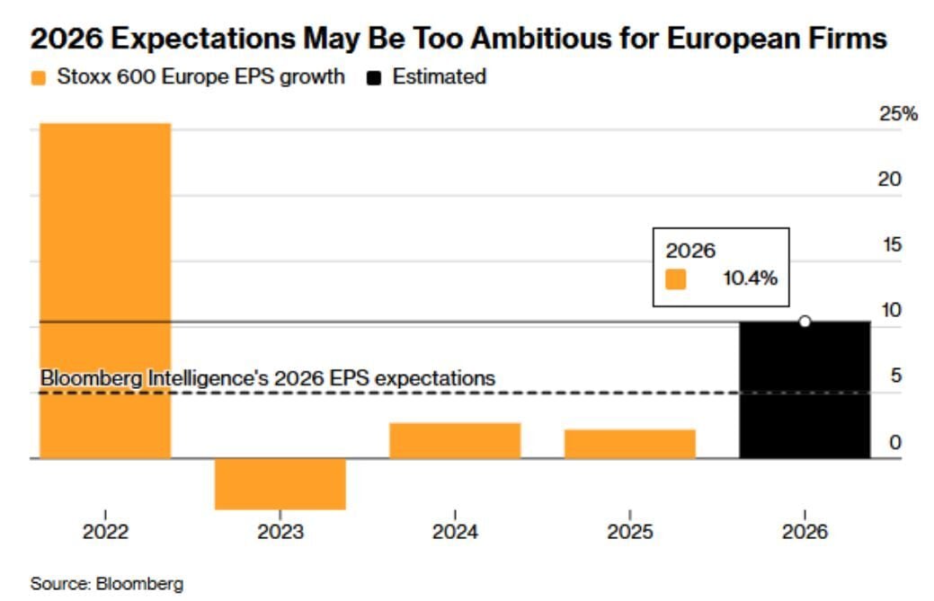 Según una encuesta de Bloomberg, este índice paneuropeo cerrará 2026 con una subida del 1%, y aunque ha experimentado recuperaciones en la última semana, el aumento será difícil de mantener ya que consideran que todavía no refleja por completo los efectos del aumento de los costes energéticos.