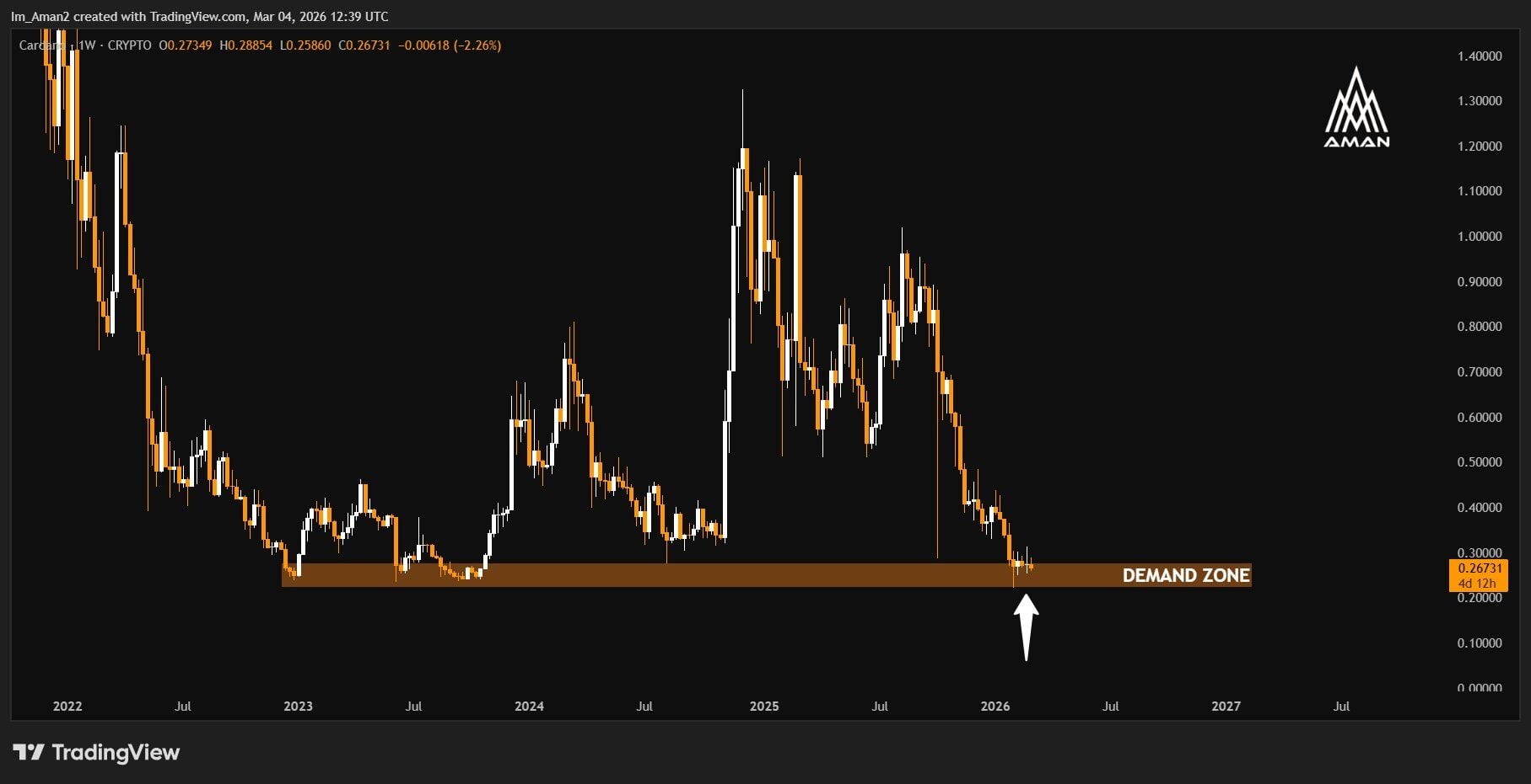 Según el analista Aman en X, Cardano ha entrado en una zona de demanda que podría desencadenar la siguiente etapa alcista. Señaló que si los compradores entraran a los precios actuales y provocaran otro rebote desde esta zona, podría desencadenar una reversión alcista.