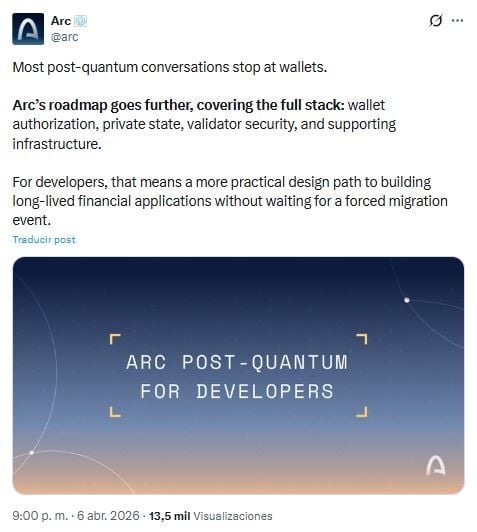 Al mismo tiempo, Arc ya está funcionando en una red de prueba pública y se está desarrollando como una blockchain orientada a empresas basada en USDC diseñada para admitir aplicaciones financieras y uso institucional. En su primera fase, Circle se centrará en proteger el acceso de los usuarios mediante la introducción de sistemas de firma más robustos y resistentes a la computación cuántica.