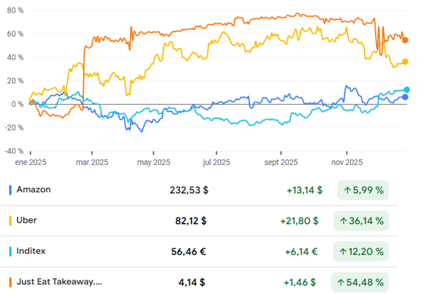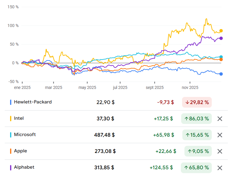 Todo esto ha pasado, pero es importante cómo sectores cómo la banca y energía ha estado incluso por delante de grandes tecnológicas cómo Microsoft, Apple, Meta o Alphbet.