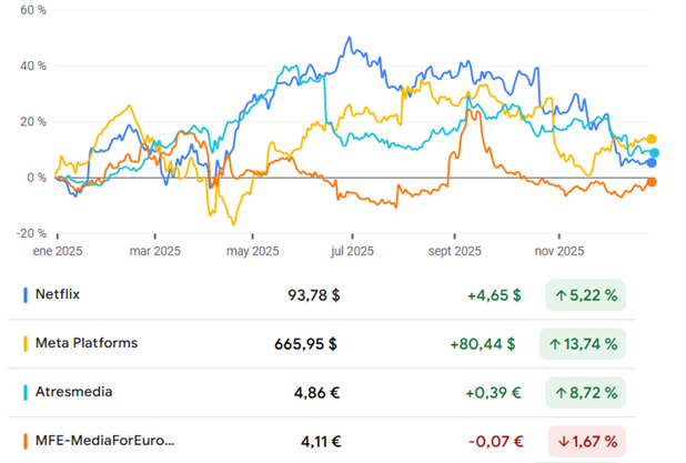 Parece que el entretenimiento no ha sido tan rentable cómo otros sectores. A este gráfico le faltaría Alphabet, por Youtube, pero ya lo hemos puesto antes el gráfico del mismo.