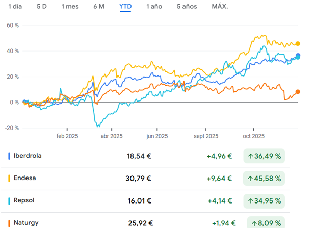 Ya por último y no menos importante, la mayoría de nuestras actividades necesitan energía para poder funcionar, así es que vamos a analizar las principales energéticas españolas.