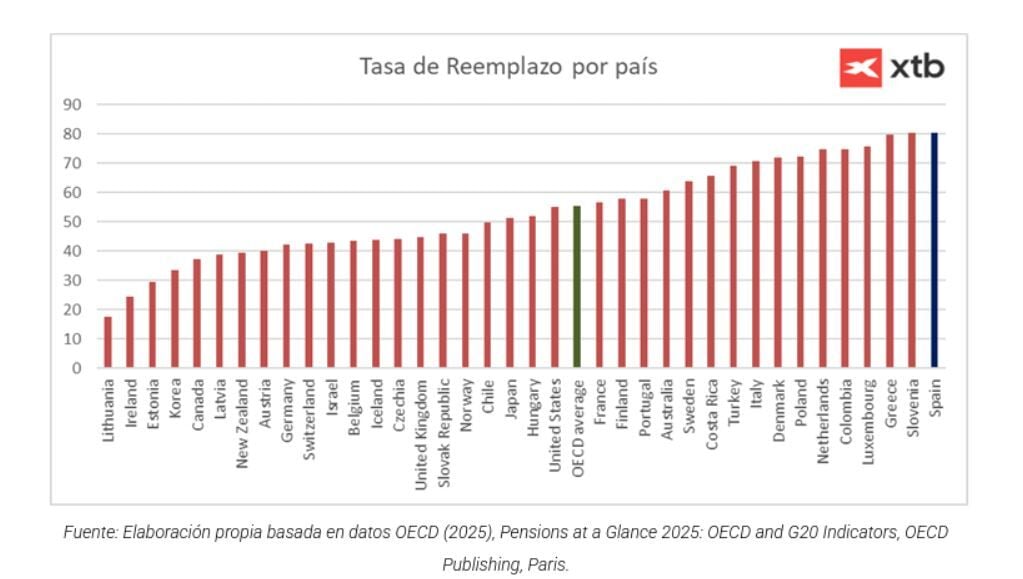 Ahora mismo, lo cierto es que en España la tasa de reemplazo es la mayor entre la OCDE y llega al 80% pero se espera que esos niveles, los que se refieren al porcentaje del último salario que se percibe como pensión y por tanto la cobertura que ofrece a cada persona, irá bajando progresivamente en la próxima década hasta niveles del 50 y el 60%.