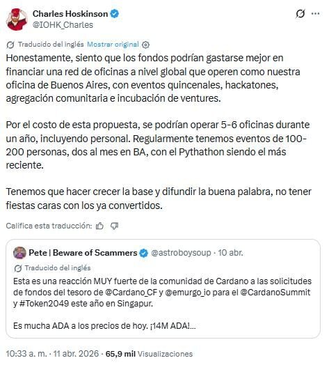 El argumento de Hoskinson es bastante directo, incluso contundente. En lugar de gastar millones en conferencias, cree que el mismo presupuesto podría financiar hasta seis oficinas permanentes a nivel mundial. Estas ubicaciones no serían meramente simbólicas, sino que funcionarían como centros neurálgicos reales, demostrando la presencia activa y dinámica de Cardano en diversas regiones.