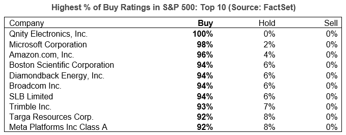 Si tenemos en cuenta que la liquidez global sigue aumentando en los mercados, eso es gasolina para las bolsas y subidas para los próximos meses. Según podemos ver en Facset, los 10 valores con más potencial por parte de los inversores institucionales, son también los 10 valores que tienen más de un 90% de recomendación de compra. Ver: Estas son las 10 acciones del S&P 500 que enamoran a los analistas en estos momentos.